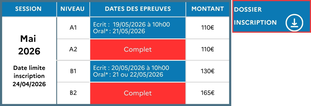 Prochaine session DELF disponible : Mai 2026 - A2 et B2 COMPLETS