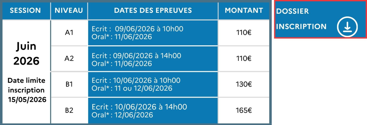 (Cliquez sur le niveau qui vous correspond pour avoir plus d'informations sur les épreuves)