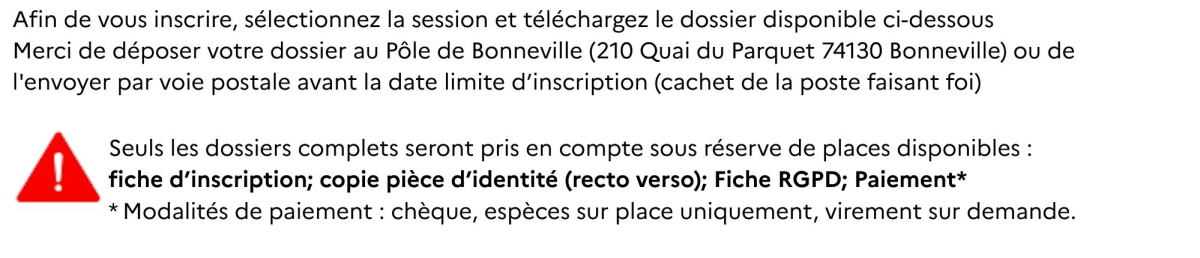 Le nombre de places est limité par session, l’inscription se fait donc sous réserve de disponibilité.